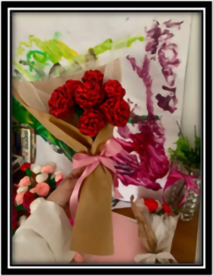Le signore dell’Ala Bianca si sono impegnate a realizzare con materiali semplici dei cuori, capaci di trasmettere messaggi di affetto e riconoscenza. I cartoni sono stati lavorati con cura e arricchiti da lana variegata. A completamento, i cuori sono stati personalizzati con fiocchi, bottoni e scritte. Le signore dell’Ala Rosa si sono impegnate a realizzare dei piccoli bouquet di fiori di carta crespa allegri e colorati, accompagnati da pensieri e poesie per festeggiare l’amore e l’affetto per la mamma.